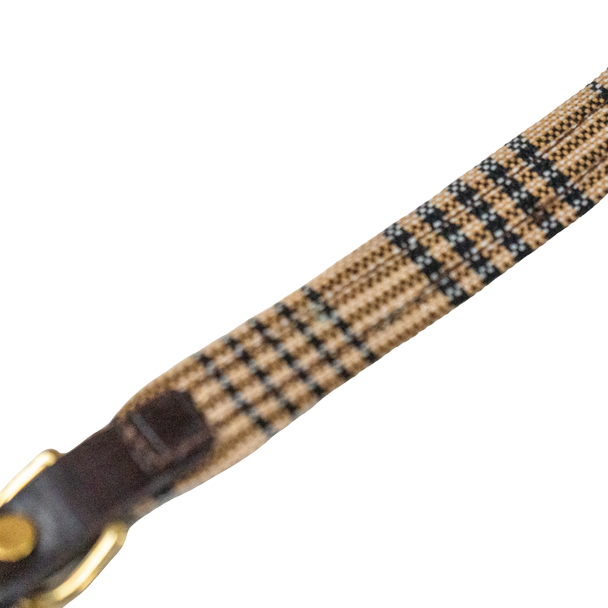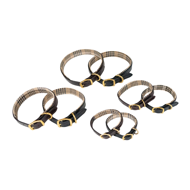 Dress your pup in timeless equestrian charm with the 5/A Baker® Dog Collar. Crafted from top-quality English bridle leather and cushioned with soft garment leather, it ensures ultimate comfort. Featuring our classic Baker plaid lining and sturdy brass or stainless steel hardware, this handmade collar is both tough and uniquely stylish.