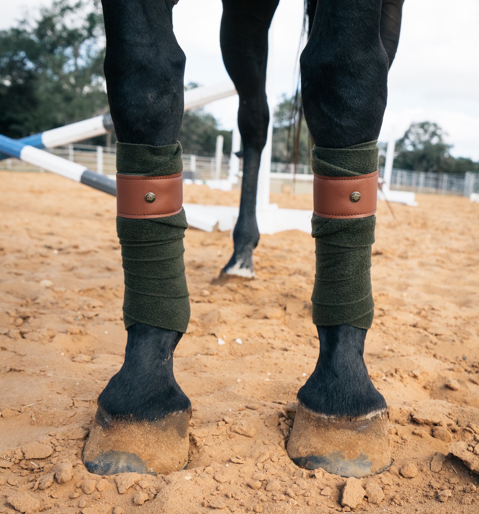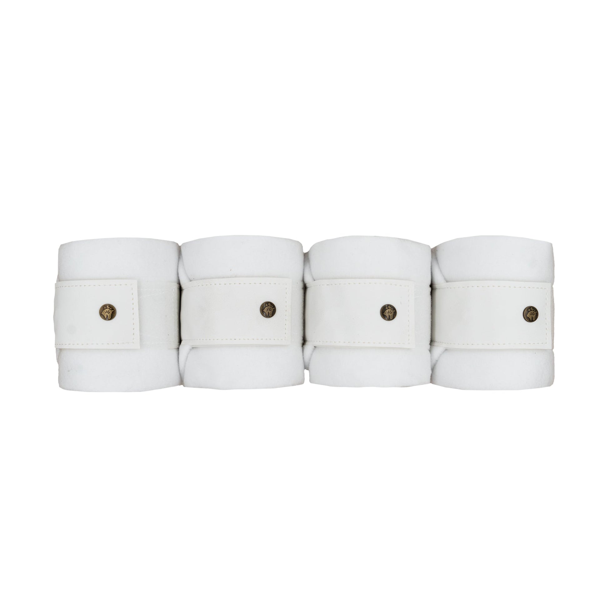 "Show Ready White." Set of 4, soft medium weight polar fleece polos. Finished with 2" hook & loop and durable leatherette trim. 4.5" wide X 9 ft. Machine washable, machine low or air dry. Mesh wash bag included.