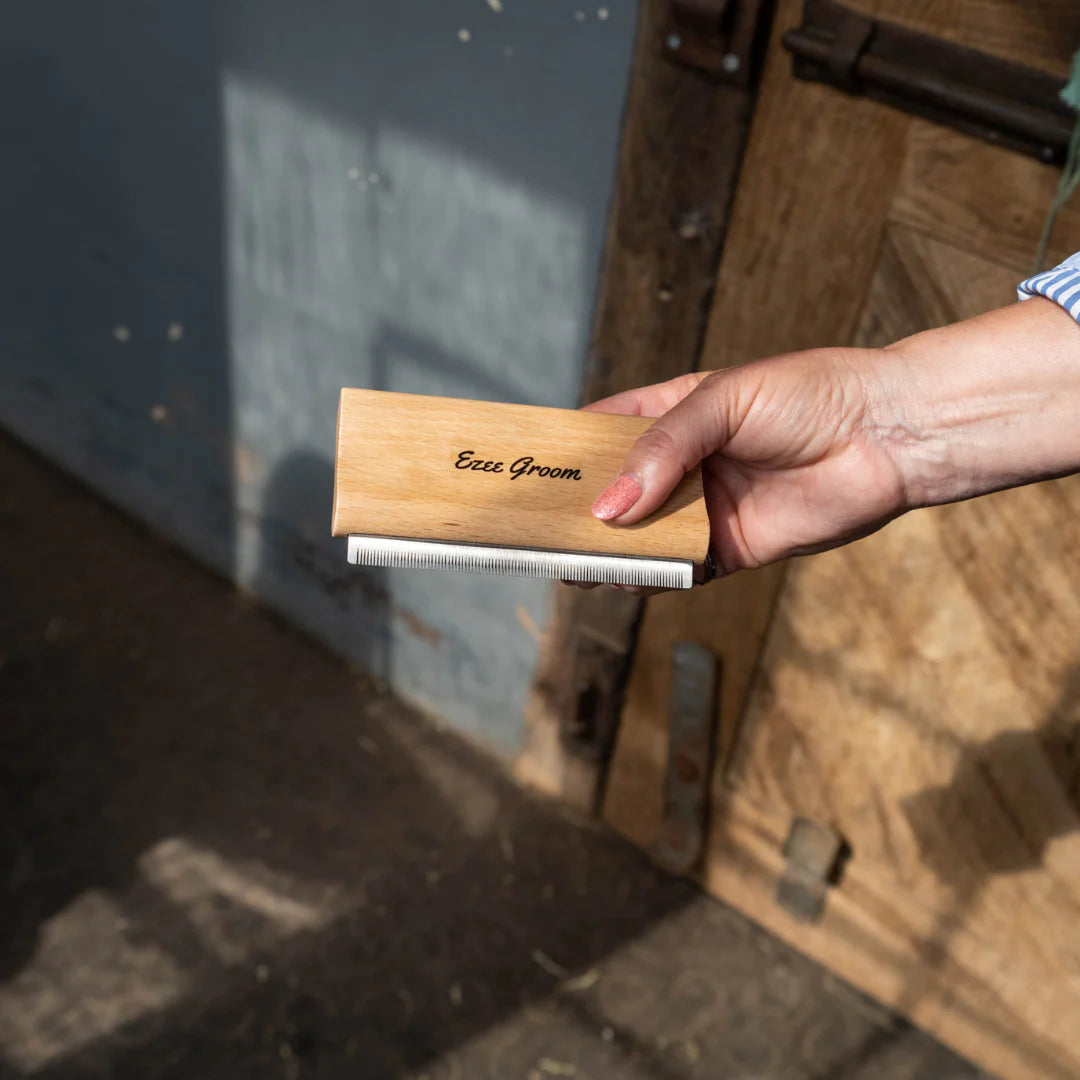 Meet your new grooming essential: the Ezee Groom, a no-nonsense tool that banishes shed hair, buildup, and grime from even the thickest coats. Designed with horses and ponies in mind, this groomer gets right down to business—clearing away dirt and dander while keeping skin healthy and happy. The stainless steel teeth paired with a contoured Beech wood handle create the perfect combo: durable teeth that work hard and a grip that feels natural in your hand. Whether you're tackling daily maintenance or prepping for the big event, this groomer makes the job easier and way more enjoyable. It's the kind of tool that earns its place in every equestrian's grooming arsenal.